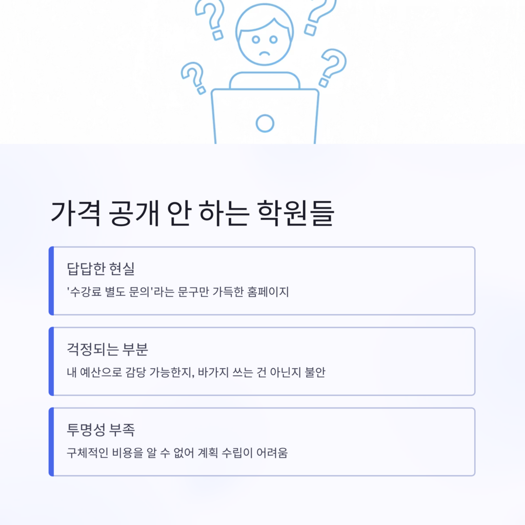 1. “상담 후 결정?” 가격 공개 안 하는 학원들 때문에 답답하셨죠?