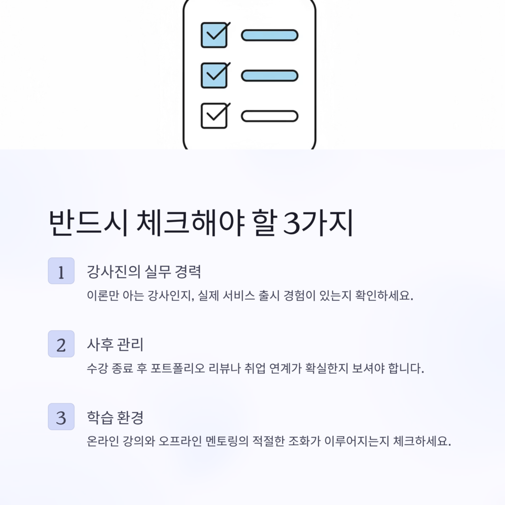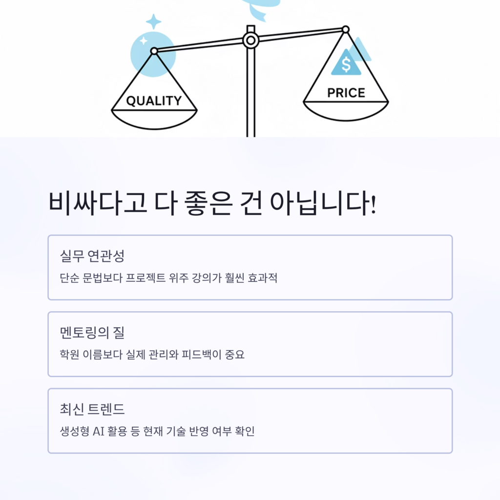 ‘학원 이름’이 아니라 ‘커리큘럼의 실무 연관성’과 ‘멘토링의 질’에서 결정되더군요.